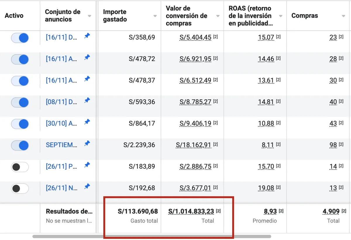 Al trabajar con nosotros este e-commerce logró escalar su facturación a más de USD$300.000 manteniendo un rendimiento constante superior a 8 en toda su cuenta.